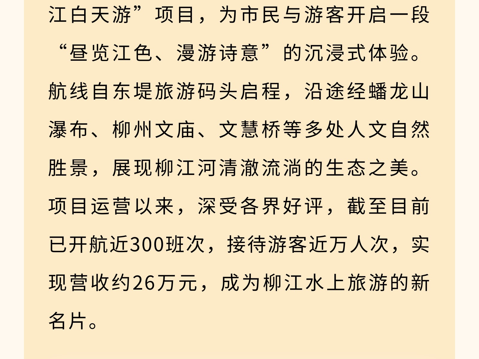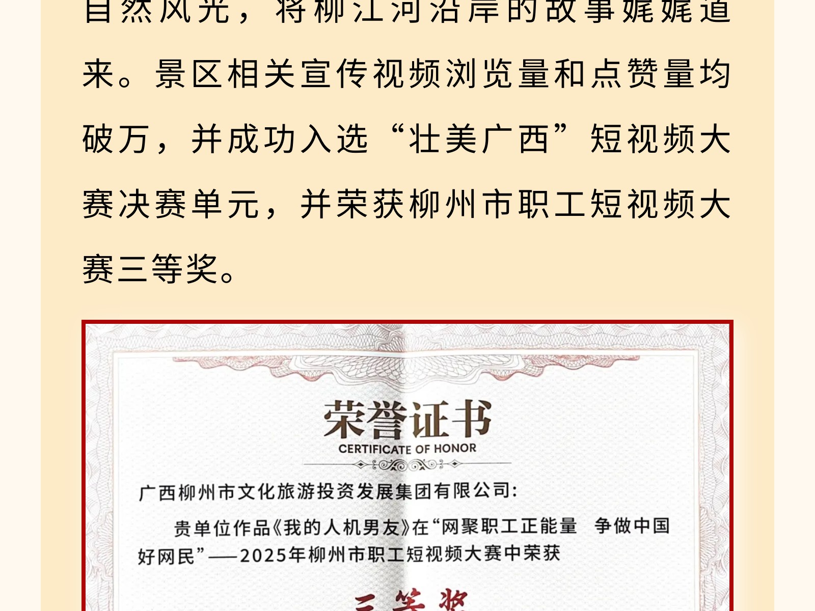 【文旅聚勢(shì)2025】碧水映城,風(fēng)帆勁起——百里柳江公司書寫文旅融合新篇章 發(fā)布時(shí)間:2025年12月25日 10時(shí)來(lái)源:本站原創(chuàng)瀏覽:99 人次